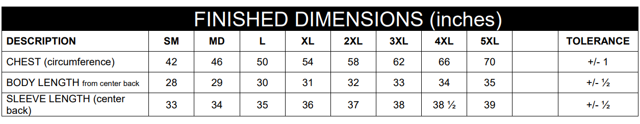 S-5XL (upcharges apply for 2XL-5XL)